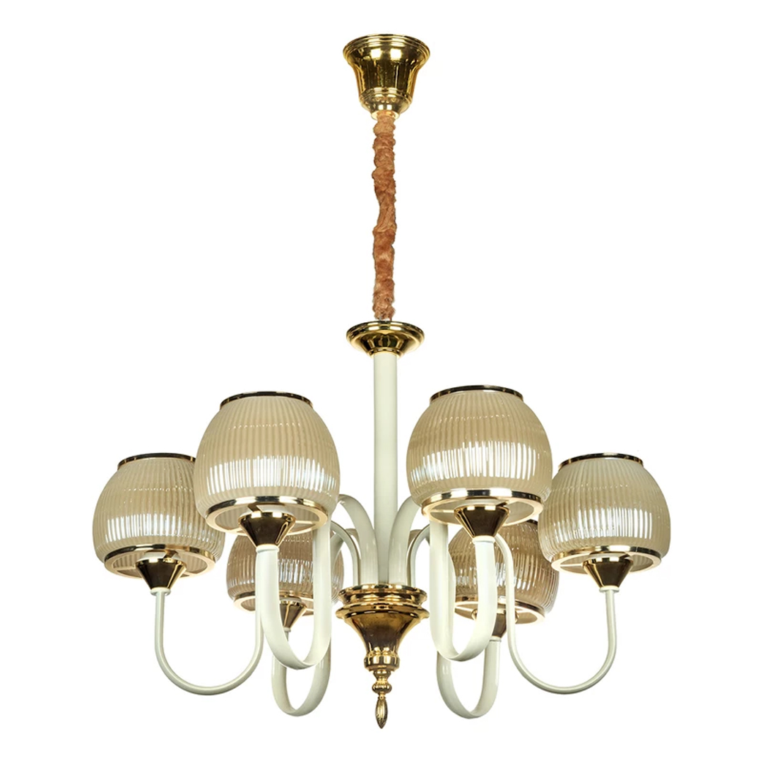 خانه لوستر لوستر شش شعله چشمه نور کد ۱۷۰۷/6CR کرم طلایی